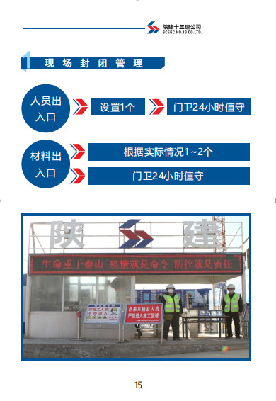 《手冊(cè)》包括陜建十三建公司復(fù)工準(zhǔn)備工作、復(fù)工前驗(yàn)收流程、辦公區(qū)管理、施工區(qū)管理、宿舍及餐廳管理、后勤保障、應(yīng)急管理七部分內(nèi)容。
