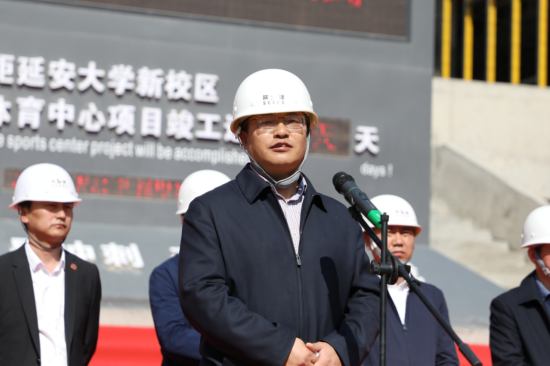 延安大學(xué)黨委委員、副校長(zhǎng)楊偉宏致辭,他代表延安大學(xué)全體師生向疫情期間奮戰(zhàn)在一線的施工人員及陜建集團(tuán)表示衷心感謝,對(duì)十三建公司承建的延大體育中心項(xiàng)目建設(shè)給予充分肯定。他指出,延安大學(xué)體育中心項(xiàng)目作為十四運(yùn)重點(diǎn)建設(shè)項(xiàng)目,意義重大。當(dāng)前,項(xiàng)目建設(shè)進(jìn)入60天倒計(jì)時(shí),希望全體參建人員從延安精神中汲取力量,大力弘揚(yáng)愛崗敬業(yè)、艱苦奮斗的勞模精神,進(jìn)一步統(tǒng)一思想,提高認(rèn)識(shí),鼓足干勁,用一流的速度,一流的品質(zhì),展現(xiàn)陜建集團(tuán)的國(guó)企風(fēng)采和責(zé)任擔(dān)當(dāng),為第十四屆全運(yùn)會(huì)順利召開貢獻(xiàn)力量。