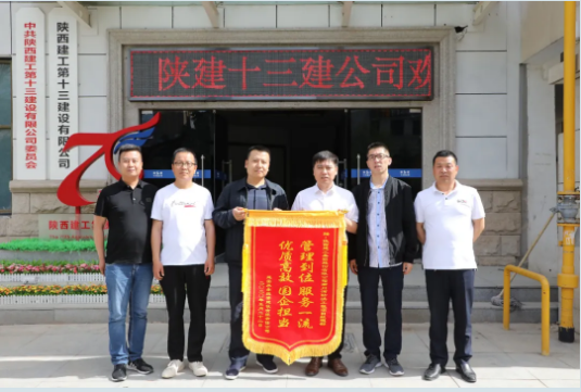 5月26日, 延安水務(wù)投資建設(shè)有限責(zé)任公司工程部部長侯海濤一行,為陜建十三建公司送來一面寫著“管理到位 服務(wù)一流 優(yōu)質(zhì)高效 國企擔(dān)當(dāng) ”的錦旗,并對(duì)十三建公司優(yōu)質(zhì)高效服務(wù)給予了高度評(píng)價(jià)。