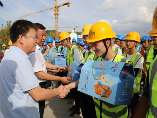 8月10日,延安市政協(xié)副主席、市總工會(huì)黨組書記、主席黑樹林一行來到陜建十三建公司南泥灣紅色文化小鎮(zhèn)項(xiàng)目慰問項(xiàng)目一線建設(shè)者,為他們送去茶葉、蜂蜜、綠豆、小米等防暑降溫物品。市總工會(huì)副主席、女職委主任鄭艷霞,南泥灣開發(fā)區(qū)黨工委副書記折克銀,市總工會(huì)辦公室副主任、困難職工幫扶中心主任惠瑞國,市總工會(huì)辦公室副主任、宣教部負(fù)責(zé)人康靖華,陜建十三建公司紀(jì)委書記、工會(huì)主席張軍祥出席活動(dòng)。