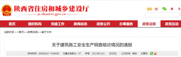陜西省住建廳關(guān)于建筑施工安全生產(chǎn)明查暗訪情況的通報(bào)