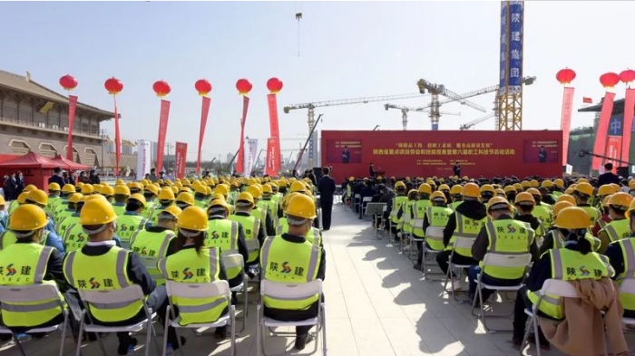 陜西省重點項目勞動和技能競賽暨第六屆職工科技節(jié)在陜建火車站項目啟動